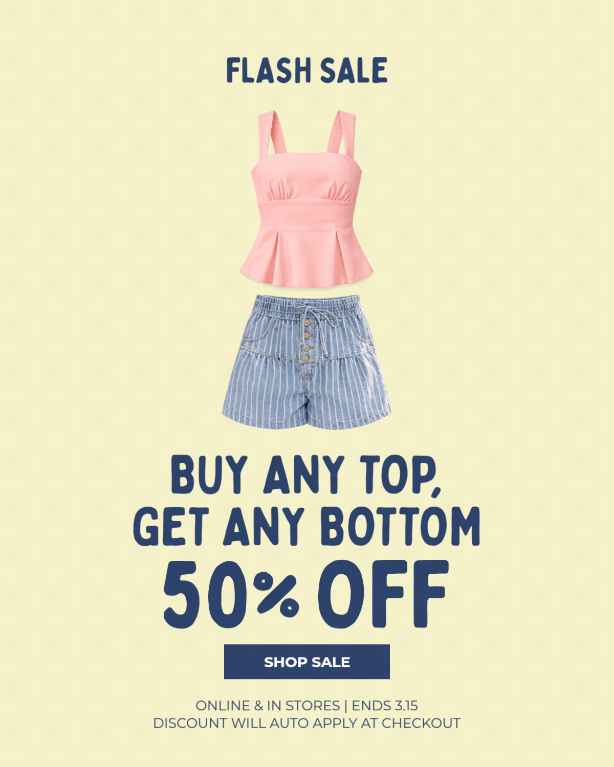 Buy Any Top, Get Any Bottom 50% OFF
