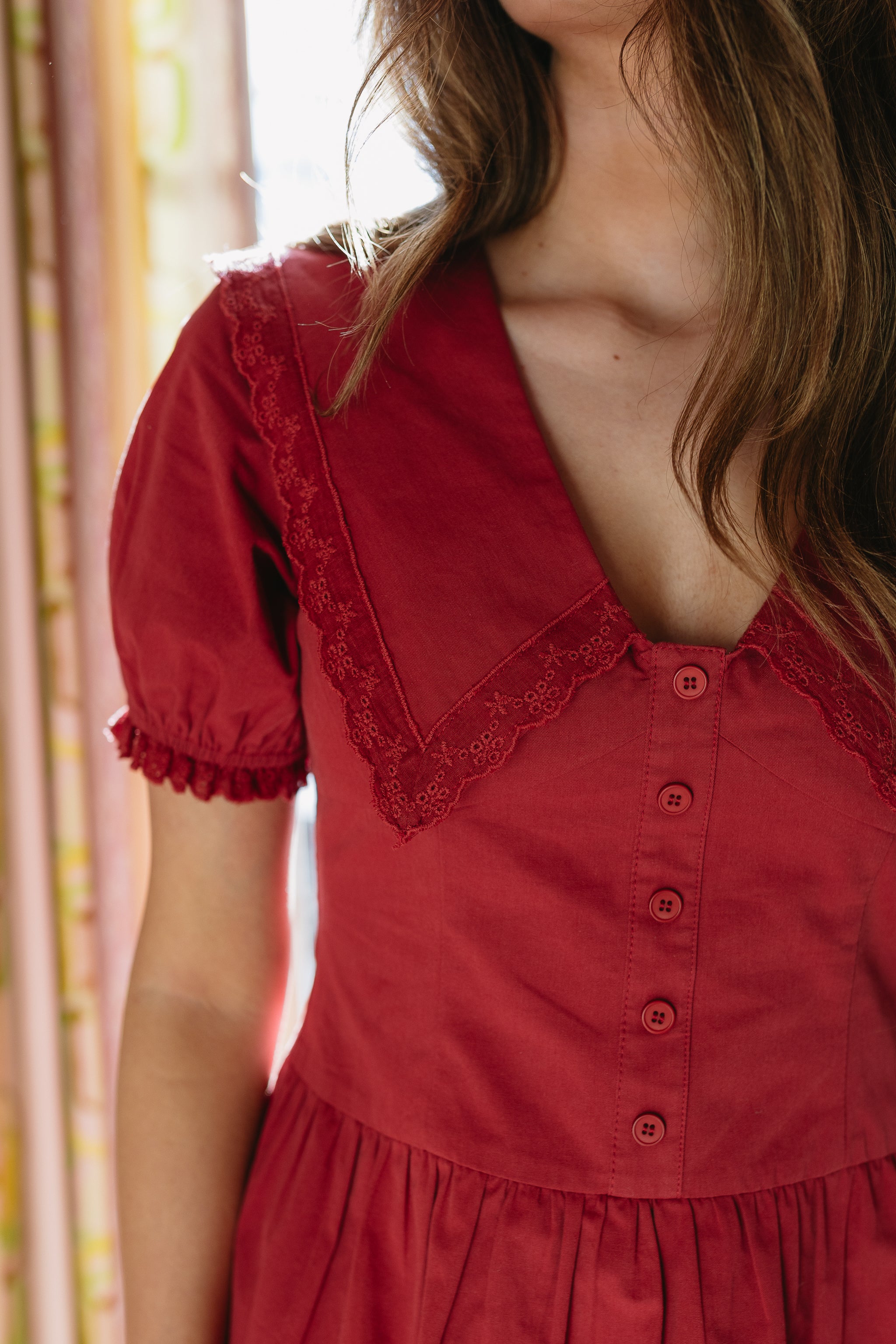 • Red woven dress