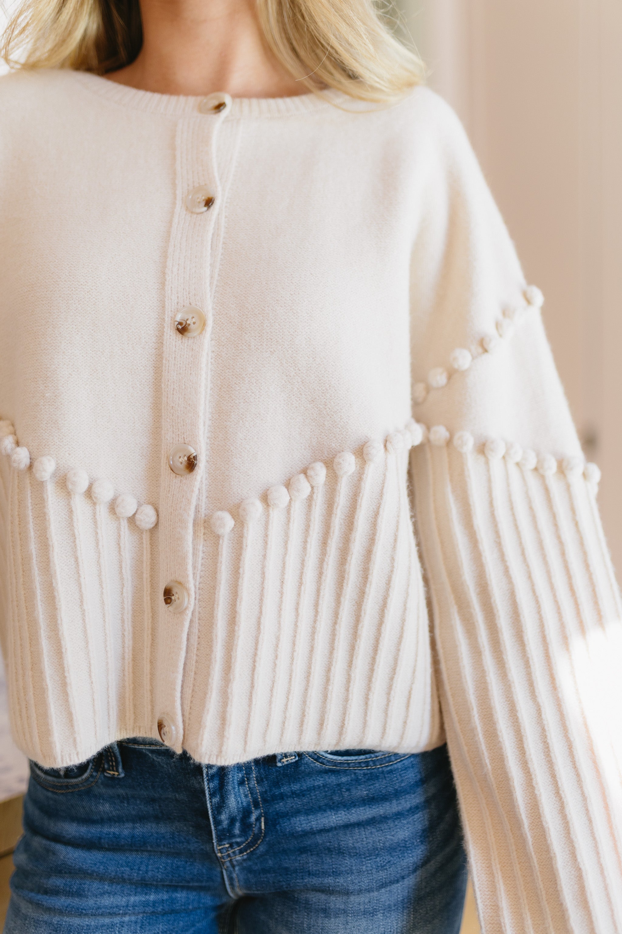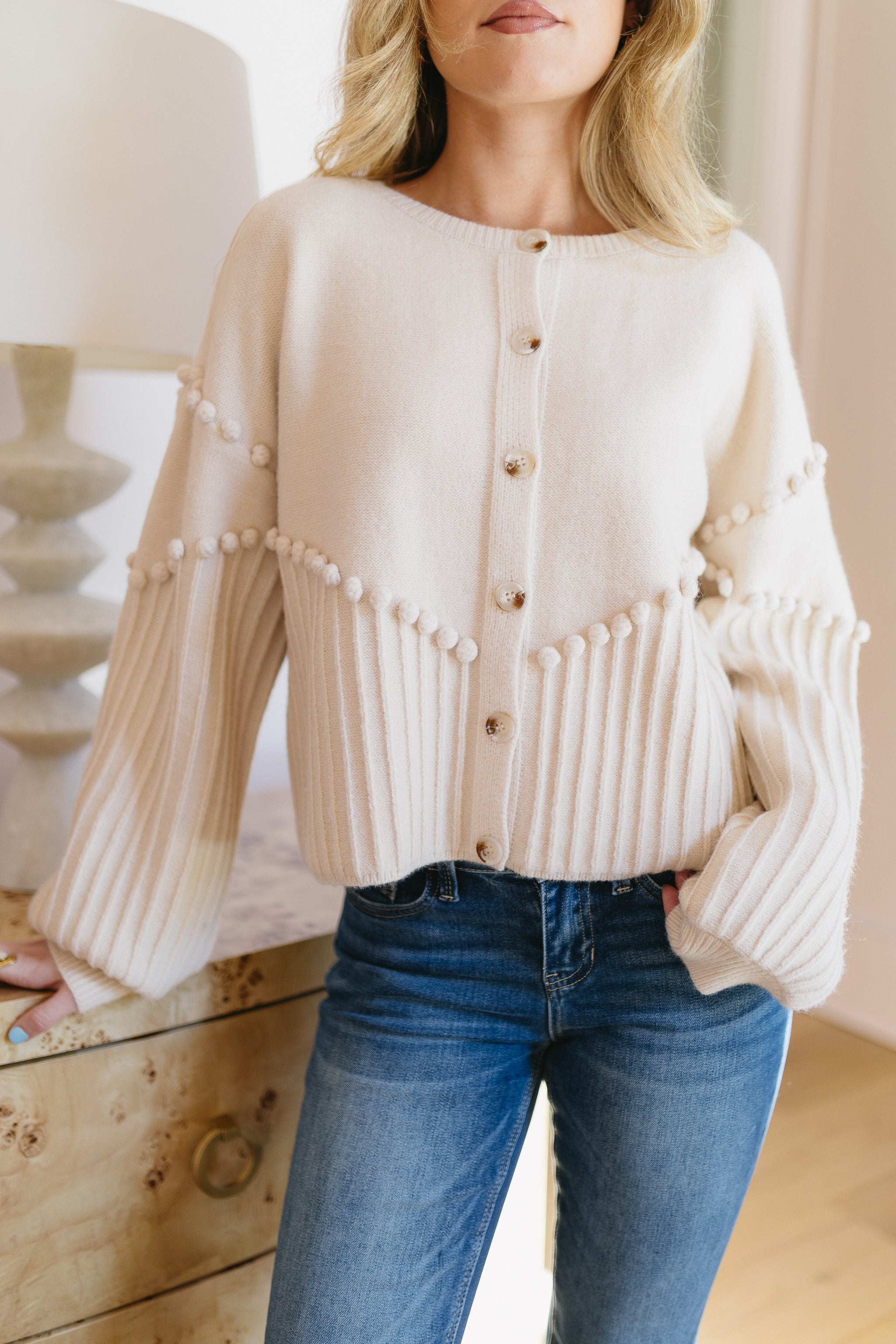 • Cream cardigan sweater