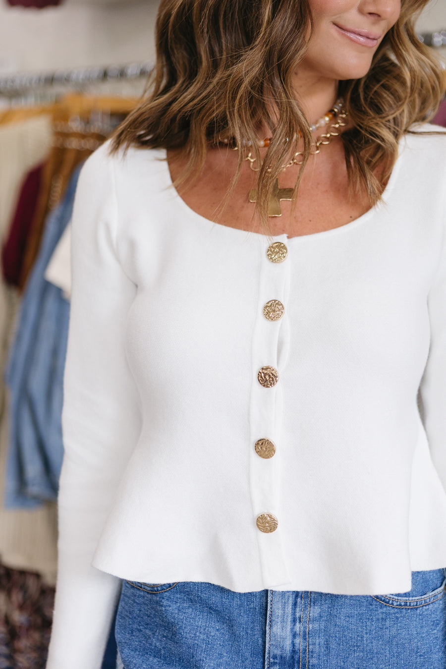 • White knit top
