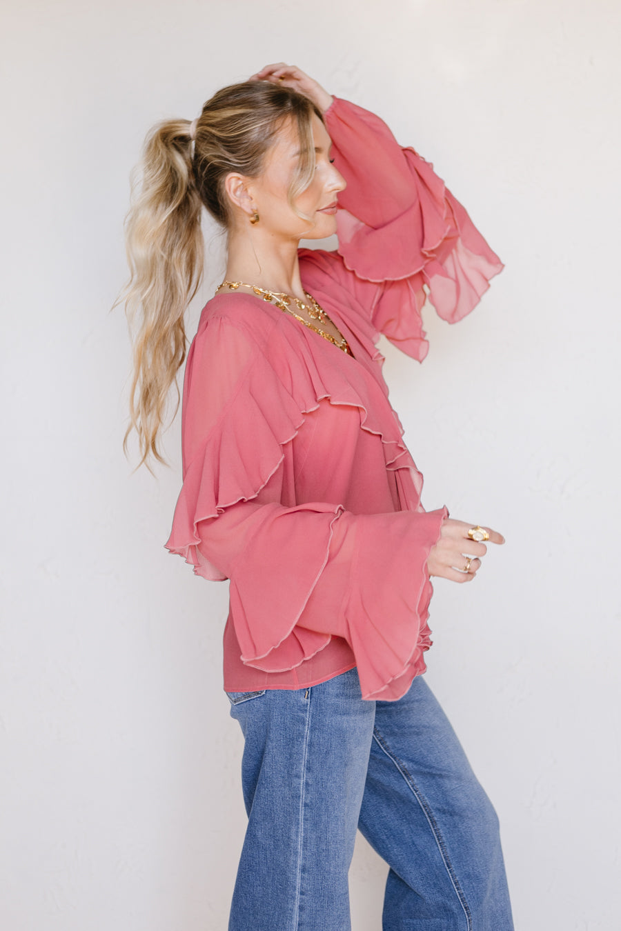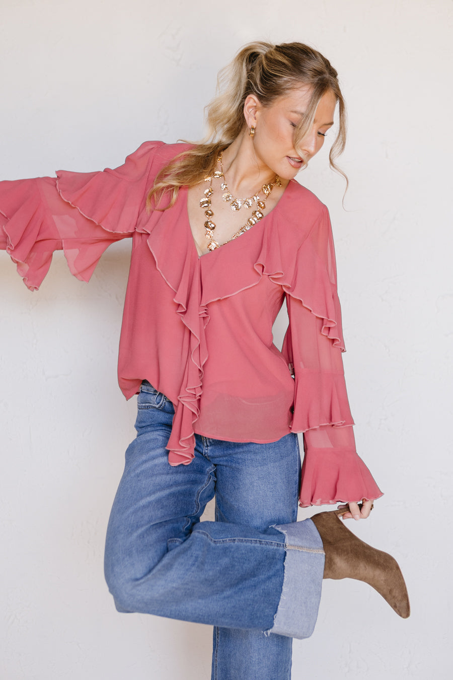 • Flowy, ruffle top