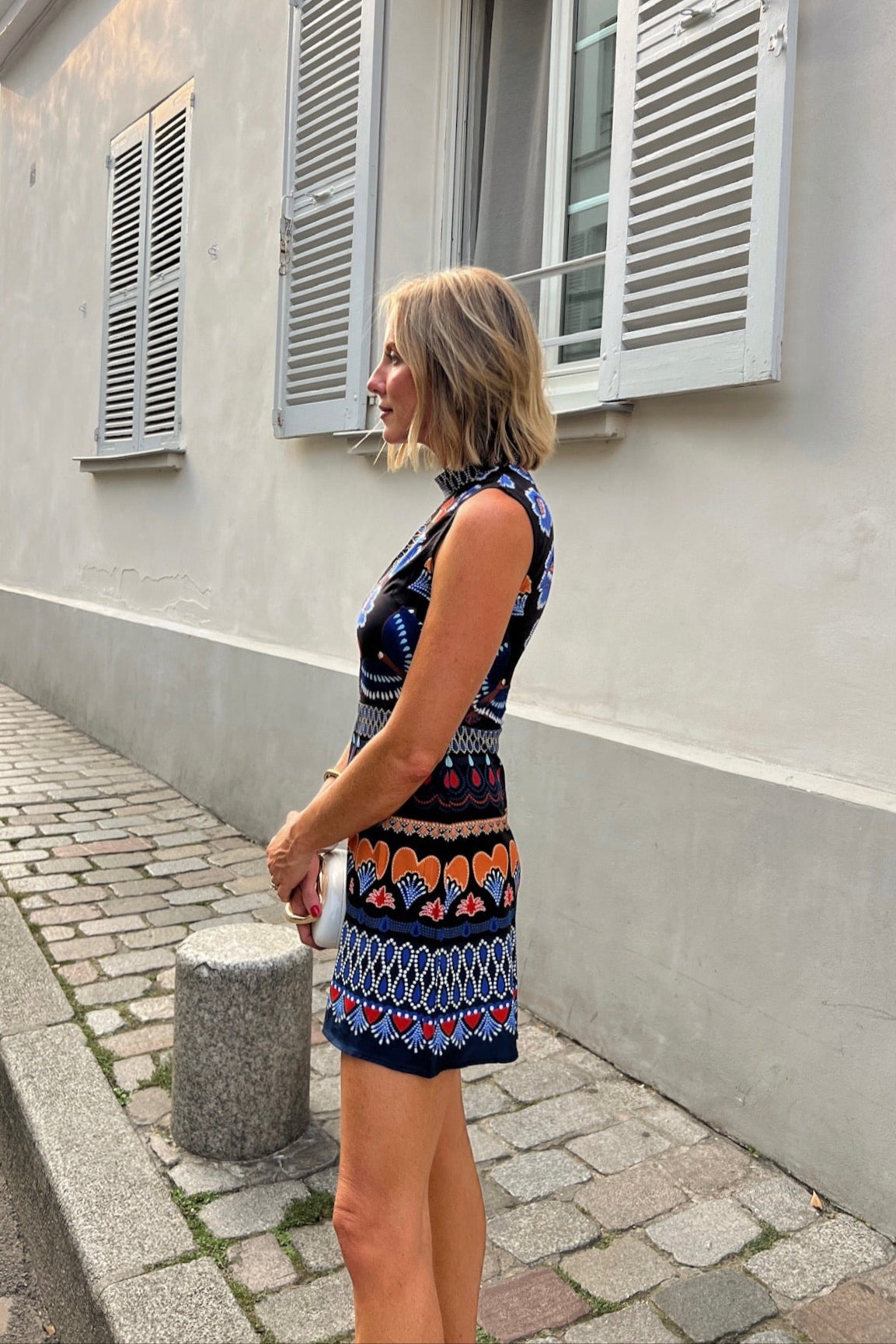 • Multi-color print dress