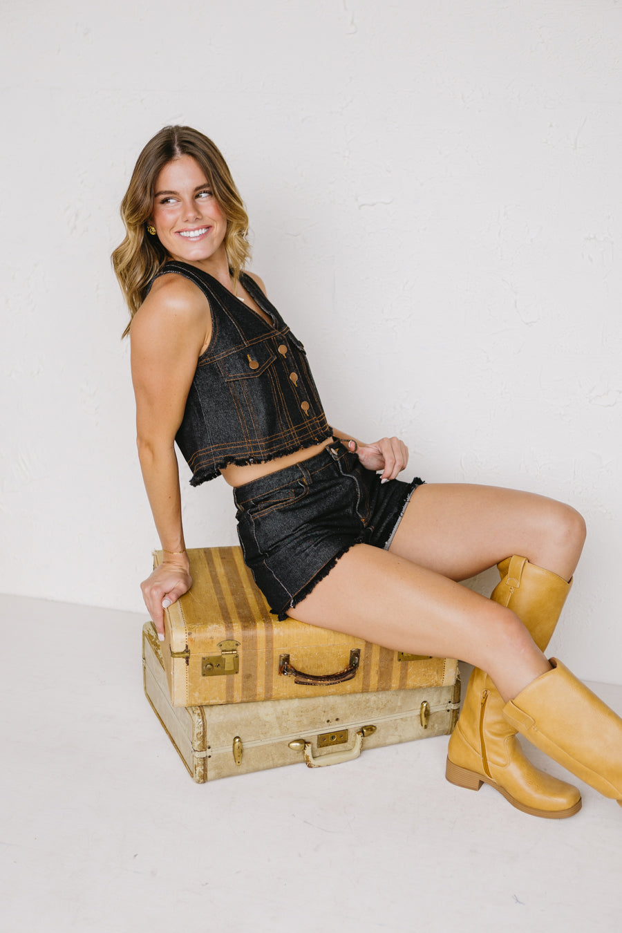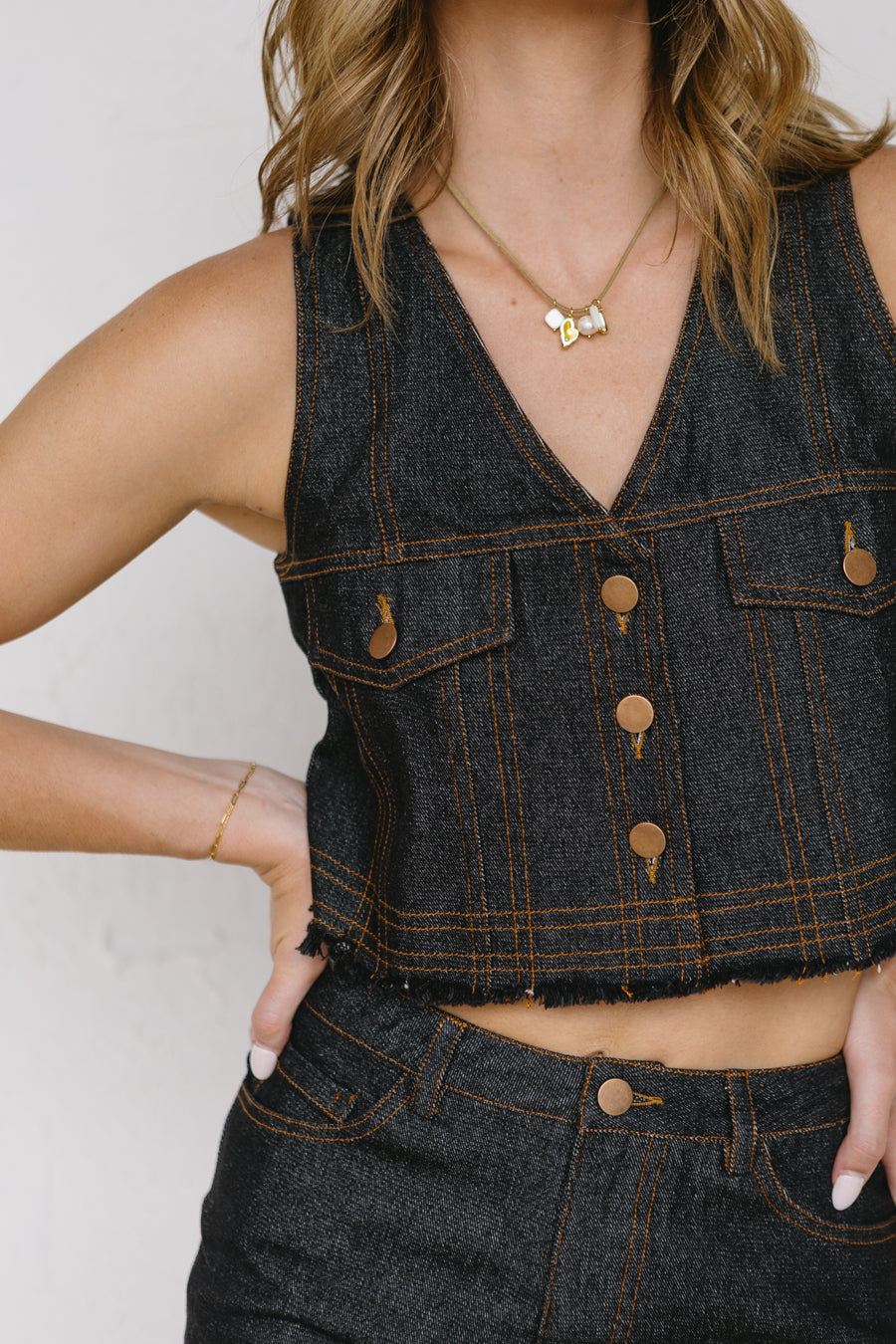 • Washed black denim vest