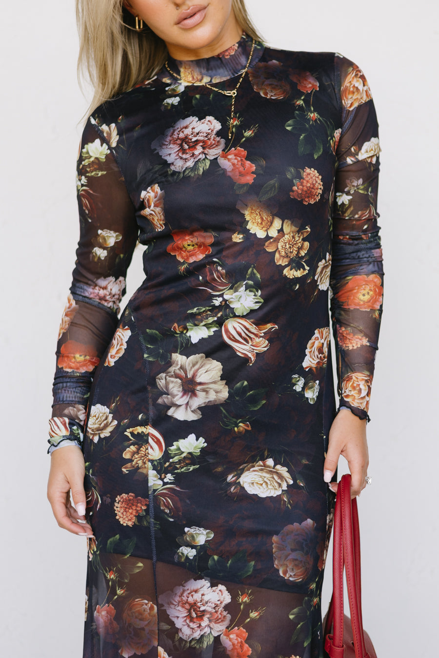 • Floral print mesh dress