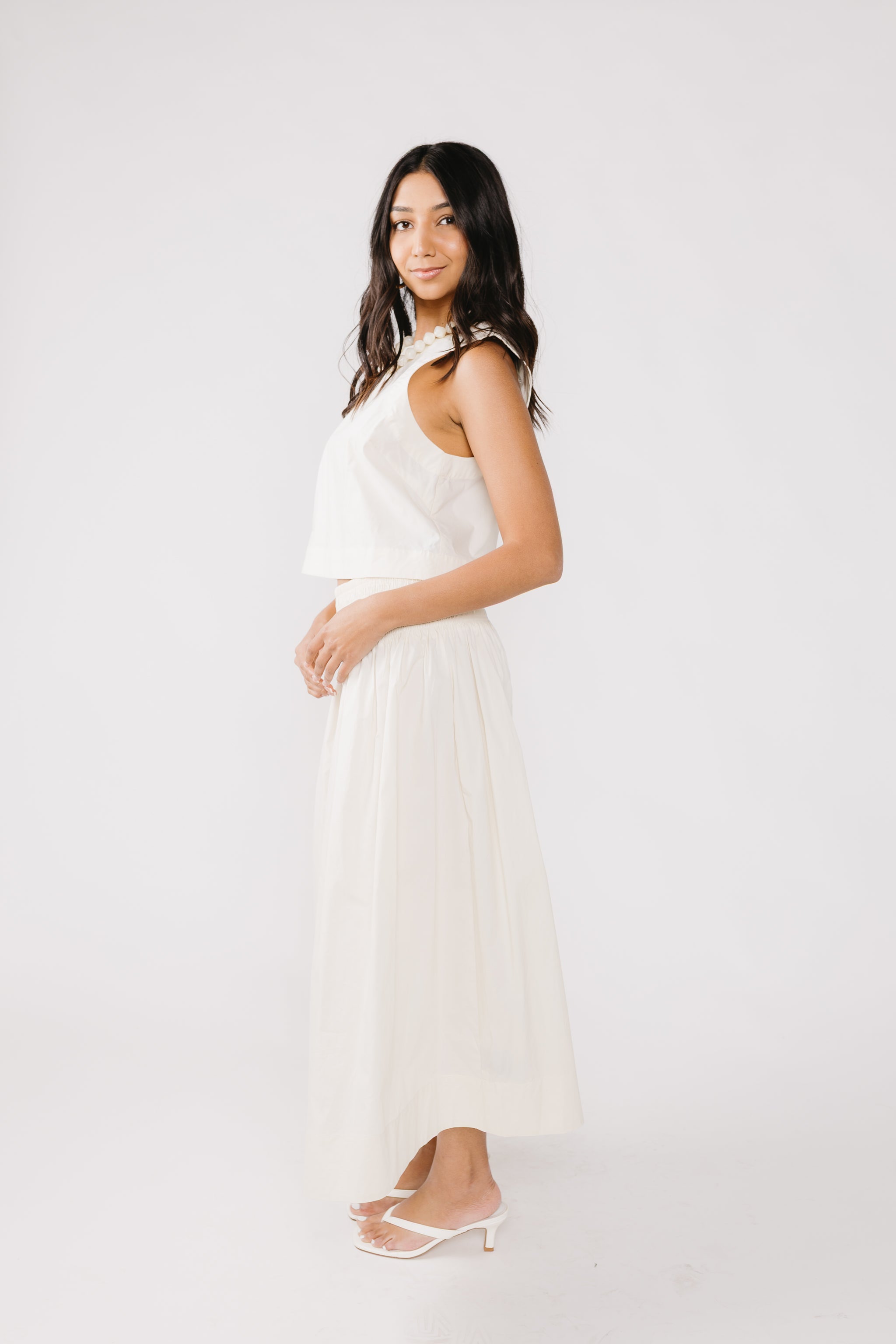 • Cream poplin skirt