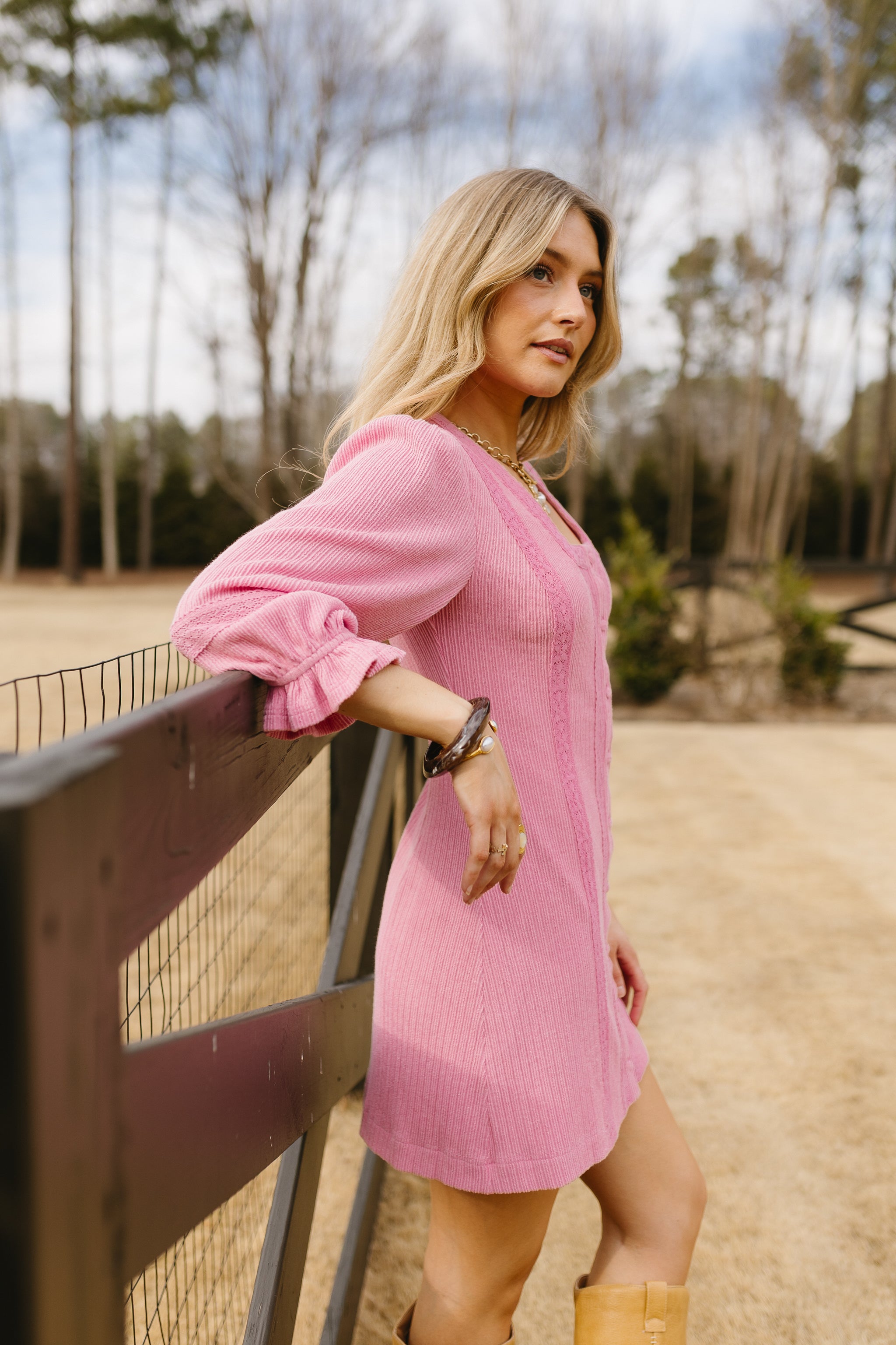 • Pink mini dress