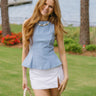 • Light blue top