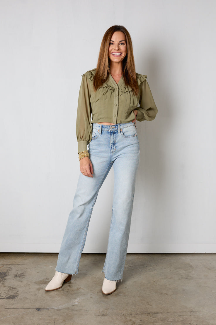 • Olive green v-neck top